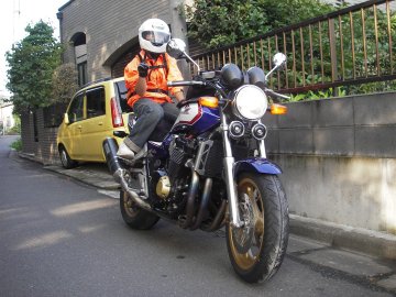 しばらくするとスキマさん登場。スタバの前に同じ色のCBが並びます。本当に目立つので前を通る車やライダーの視線を浴びます。